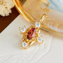 Inspired by the celestial symmetry of a compass rose and the regal allure of vintage heirlooms, the Marquise Garnet Pendant is a tribute to guided passion. At its heart lies the marquise-cut garnet, chosen for its sharp precision and deep, wine-red fire that symbolizes an unwavering inner flame. The four-point architectural setting draws inspiration from classical cathedral windows, balancing the warmth of the gold scrollwork with the brilliant clarity of the surrounding accents. This piece is crafted to be more than an accessory; it is a wearable talisman designed to capture light from every angle, offering a sophisticated silhouette that bridges the gap between antique charm and modern grace.