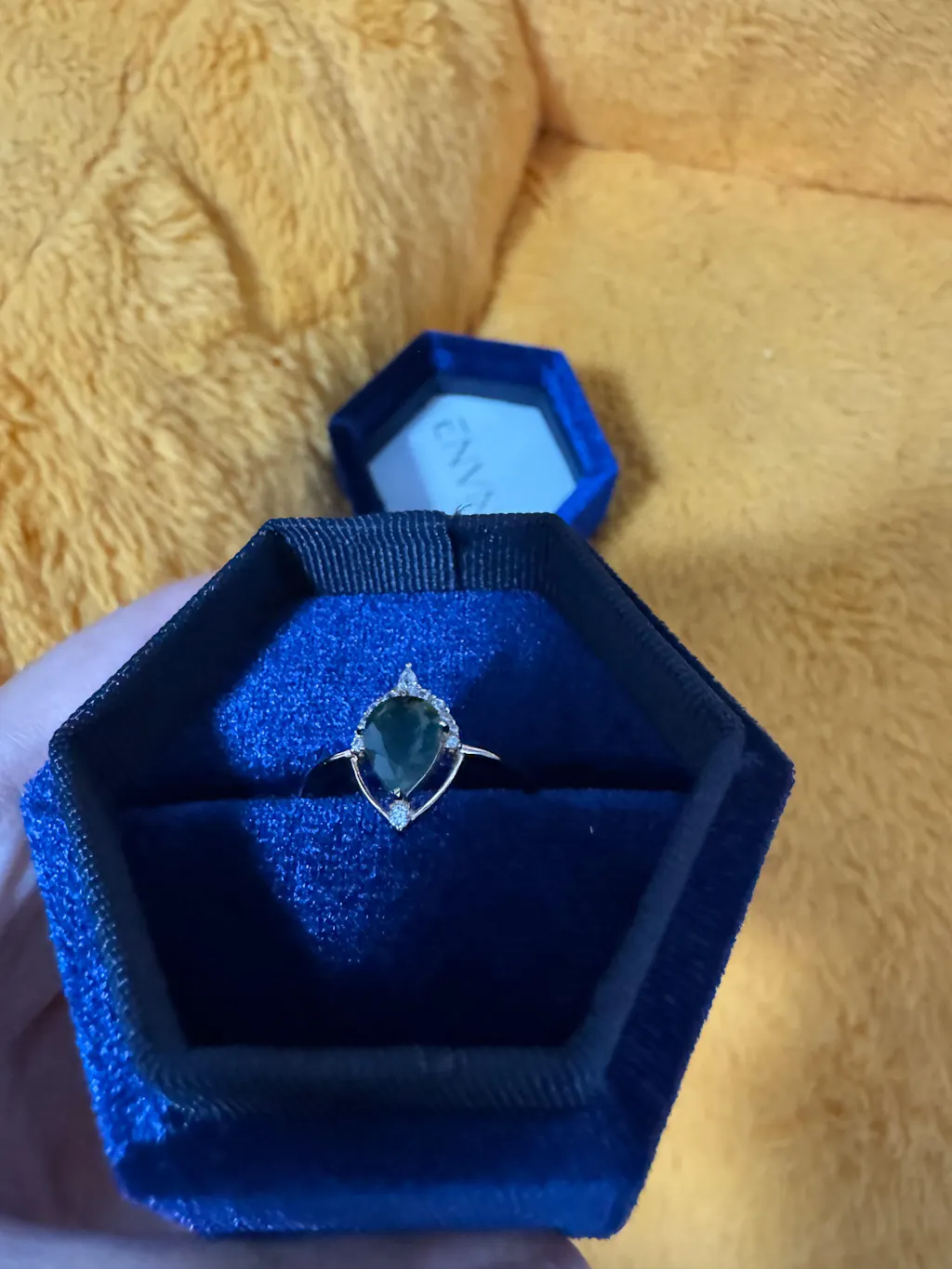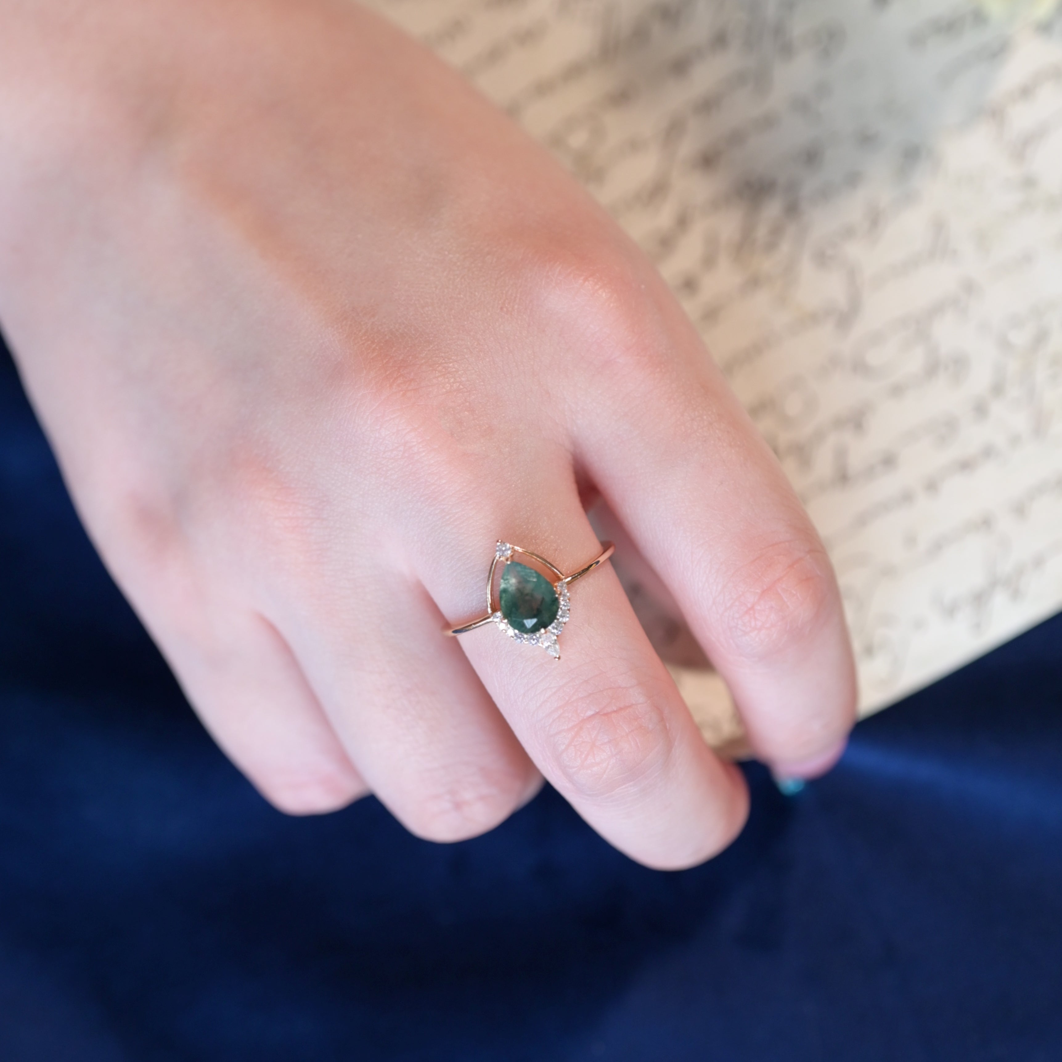 Anillo minimalista geométrico de ágata musgosa con corte pera
