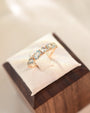 Inspirado en el brillante horizonte de la ciudad al anochecer, este anillo captura el fugaz destello del crepúsculo reflejado en las torres de vidrio. El suave azul del topacio evoca serenidad y claridad, mientras que la línea elegante de piedras refleja la elegancia urbana y la fuerza tranquila.