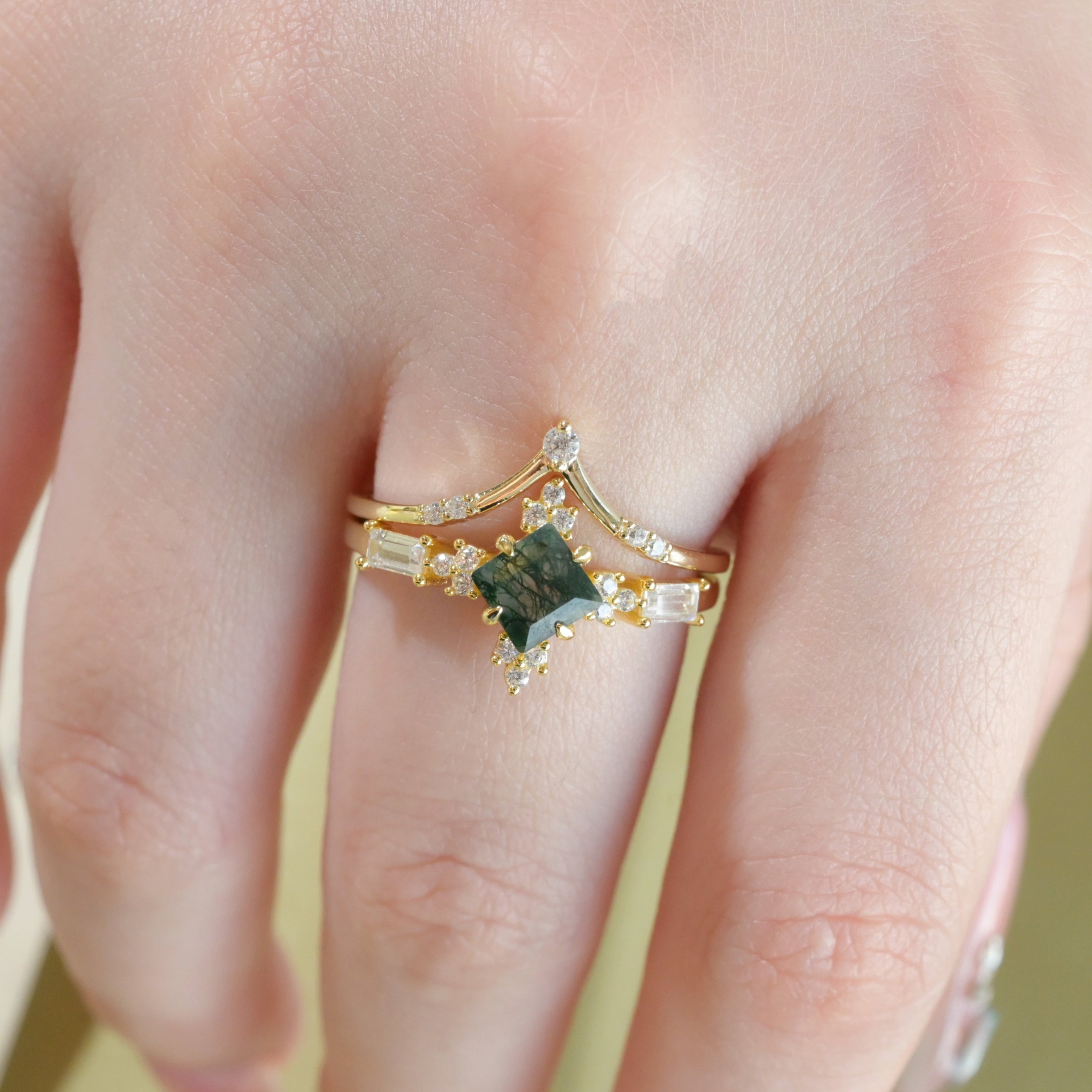 Inspirado en las líneas limpias de la geometría moderna y la belleza orgánica de la piedra natural, el Conjunto de Anillos de Ágata de Musgo Cortada en Cuadrado captura una elegancia sin esfuerzo. La ágata de musgo cuadrada refleja tonos tranquilos del bosque, mientras que las bandas estructuradas añaden un toque de gracia arquitectónica — combinando el arte de la naturaleza con la sofisticación contemporánea.