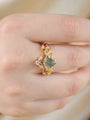 Conjunto de anillos apilables de ágata musgo con corte pera y motivo de vid