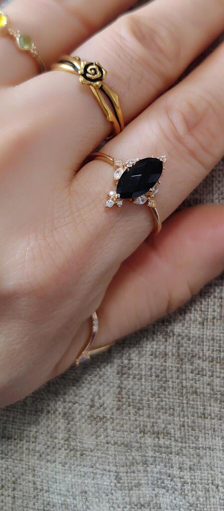 Set di anelli con corona marquise in onice