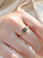 Ispirato alla bellezza serena dei paesaggi forestali, questo anello cattura il mistero organico della natura attraverso la pietra centrale in agata muschiata naturale — ognuna con un motivo unico simile a una foresta in miniatura. Il taglio geometrico esagonale conferisce una struttura moderna al fascino grezzo e terroso della pietra, mentre gli accenti scintillanti richiamano le gocce di rugiada sulle foglie, fondendo eleganza con una tranquillità radicata.