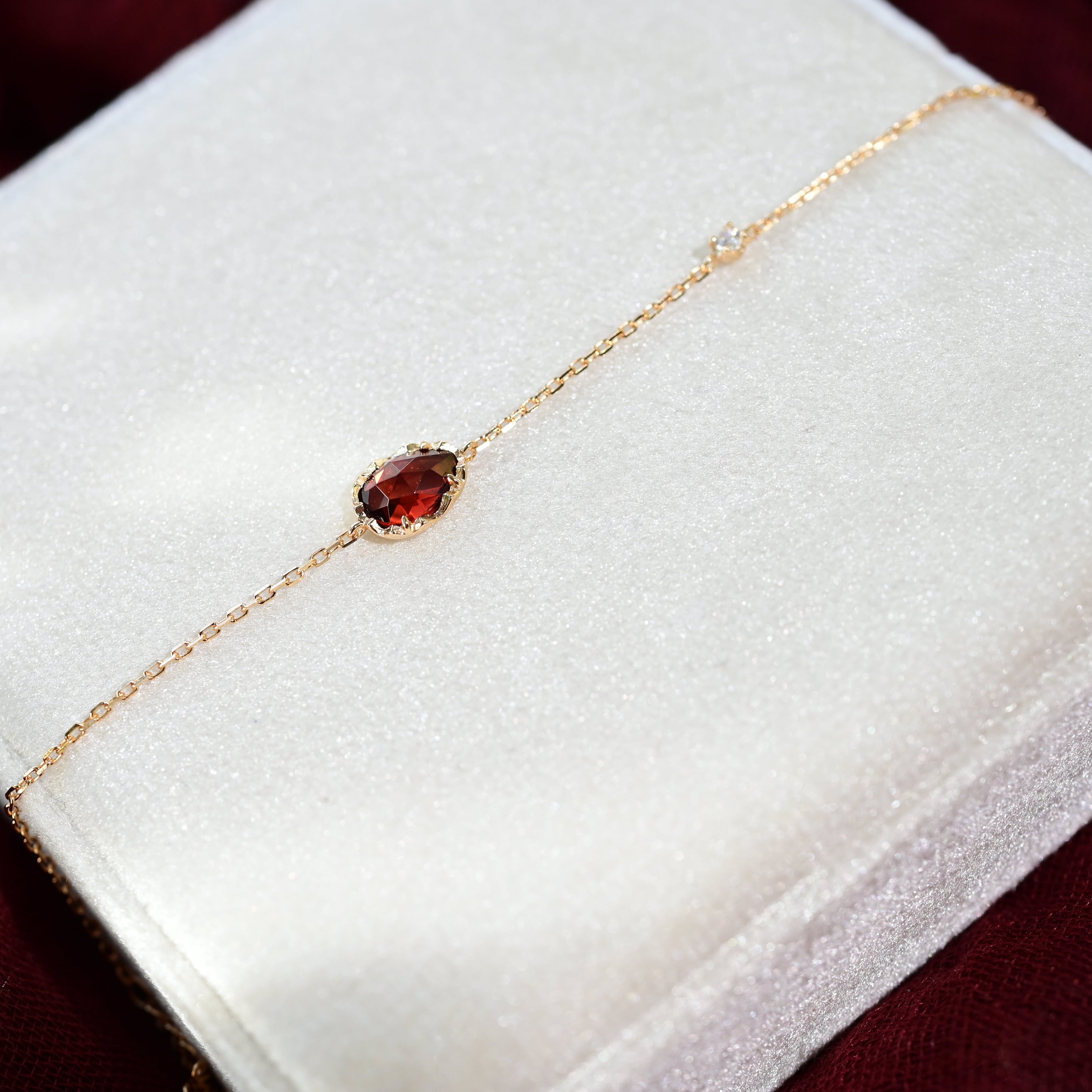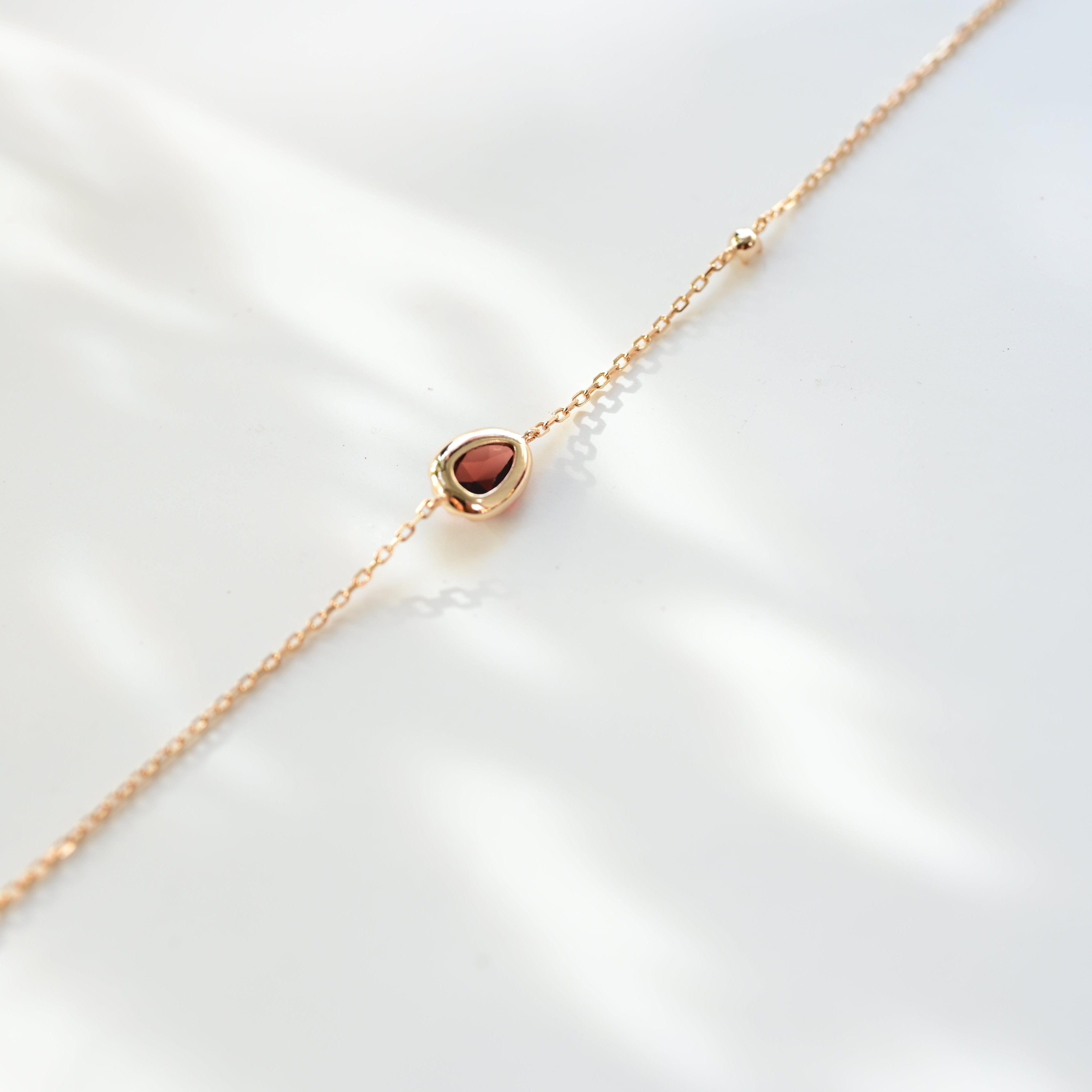 Inspired by a single drop of glowing crimson, the Crimson Teardrop Garnet Bracelet captures the quiet beauty of movement and emotion. The teardrop silhouette echoes fluid grace, while the deep red garnet glows like a lingering ember — a refined symbol of passion, warmth, and inner strength.