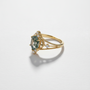 Inspired by the serenity and mystique of a hidden woodland, this ring embodies nature’s quiet poetry. At its heart lies a moss agate centerpiece, its intricate green inclusions reminiscent of forest silhouettes, encircled by a golden lattice of vines and shimmering stones. Together, they capture the radiance of sunlight filtering through ancient trees — a timeless tribute to inner peace and grounded elegance.