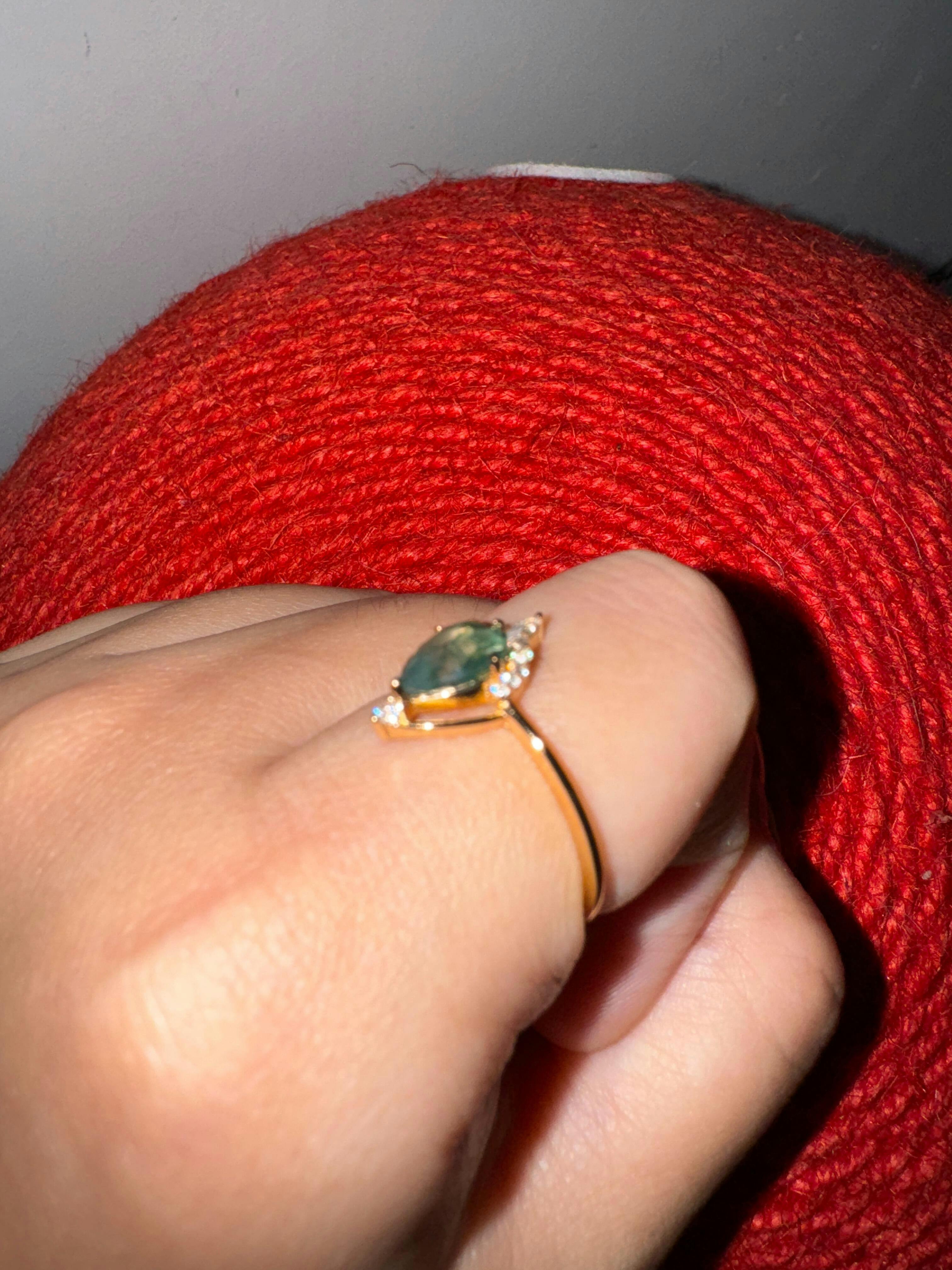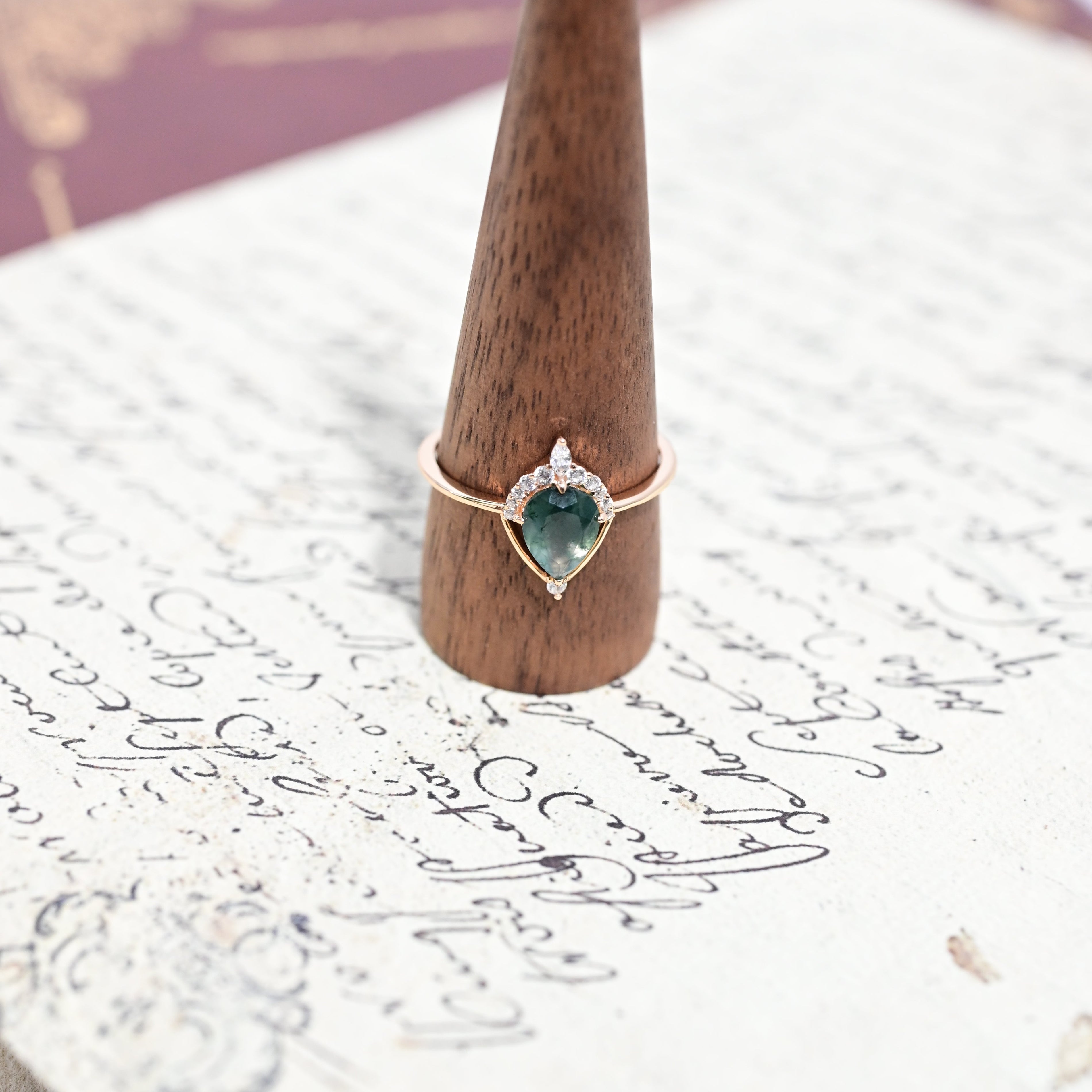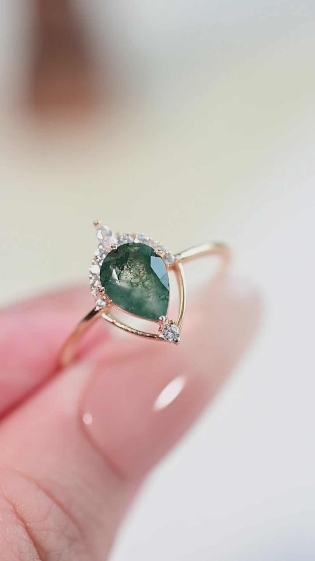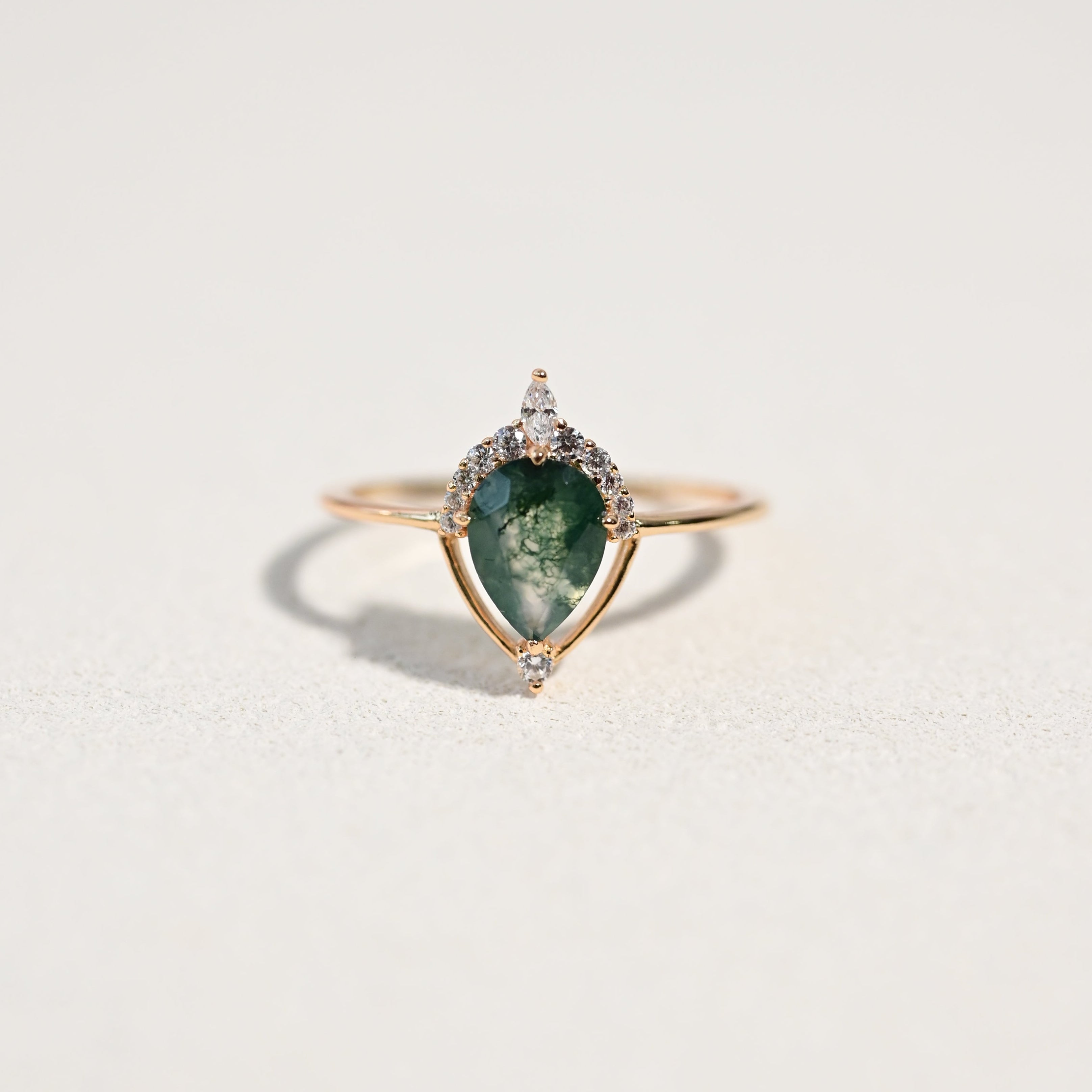 Minimalist Geometric Pear Cut Moss Agate Ring