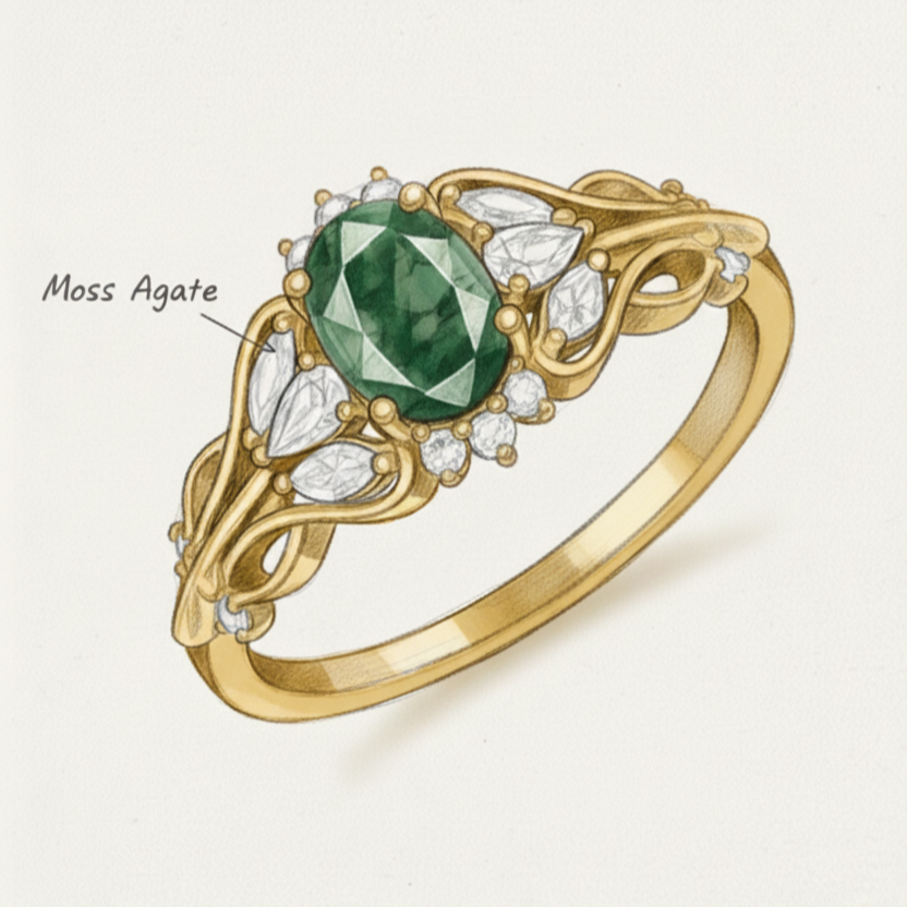 Moss Agate Verdant Grace Ring