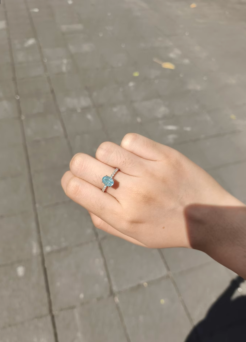 Inspired by the purity and brilliance of winter ice and snow, this ring features a premium lab-grown diamond as its centerpiece, weighing 2.8 carats (6 × 8 mm), set in sterling silver for an exquisite shine and refined elegance. The radiant crushed-ice cut enhances the stone’s brilliance, reflecting a dazzling icy glow, while the surrounding accent stones add a touch of luxury. Weighing only 2.5 g, this lightweight and comfortable ring is perfect for both daily wear and special occasions, adding a sophisticated and elegant touch to any look.